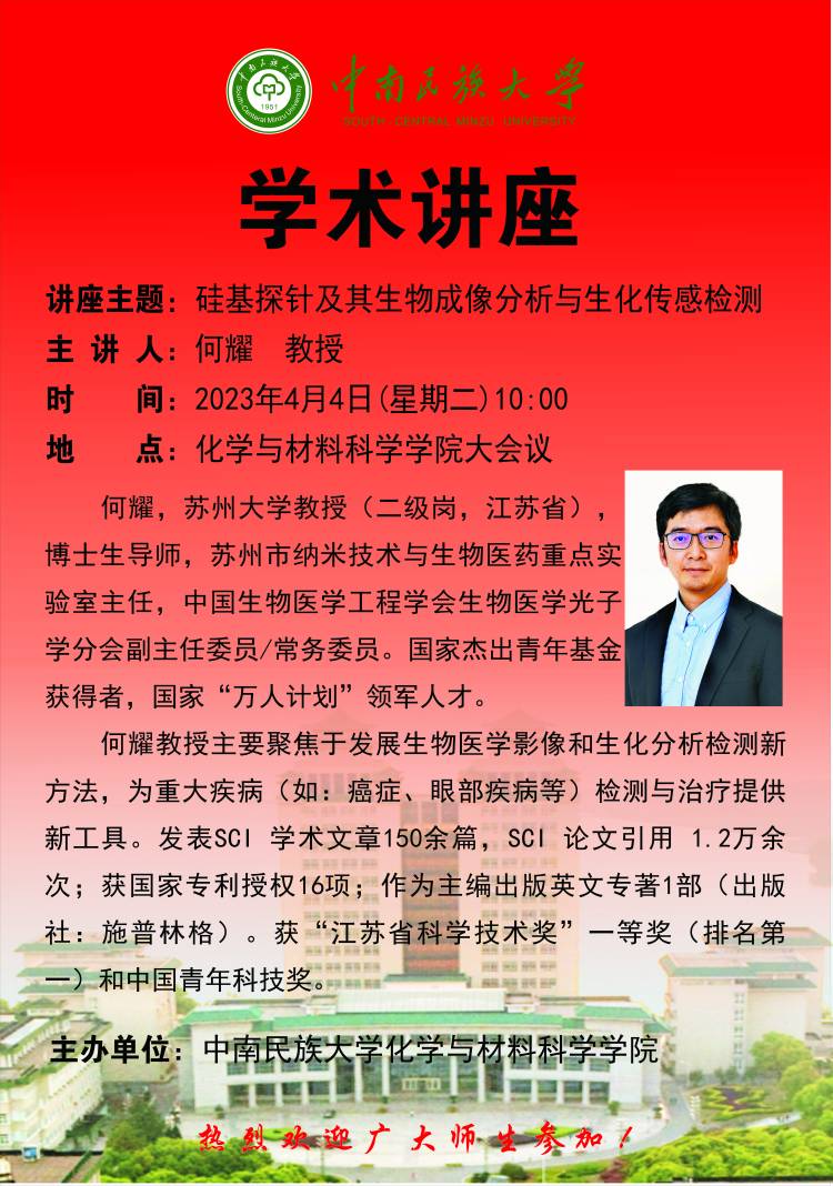 学术报告:硅基探针及其生物成像分析与生化传感检测
