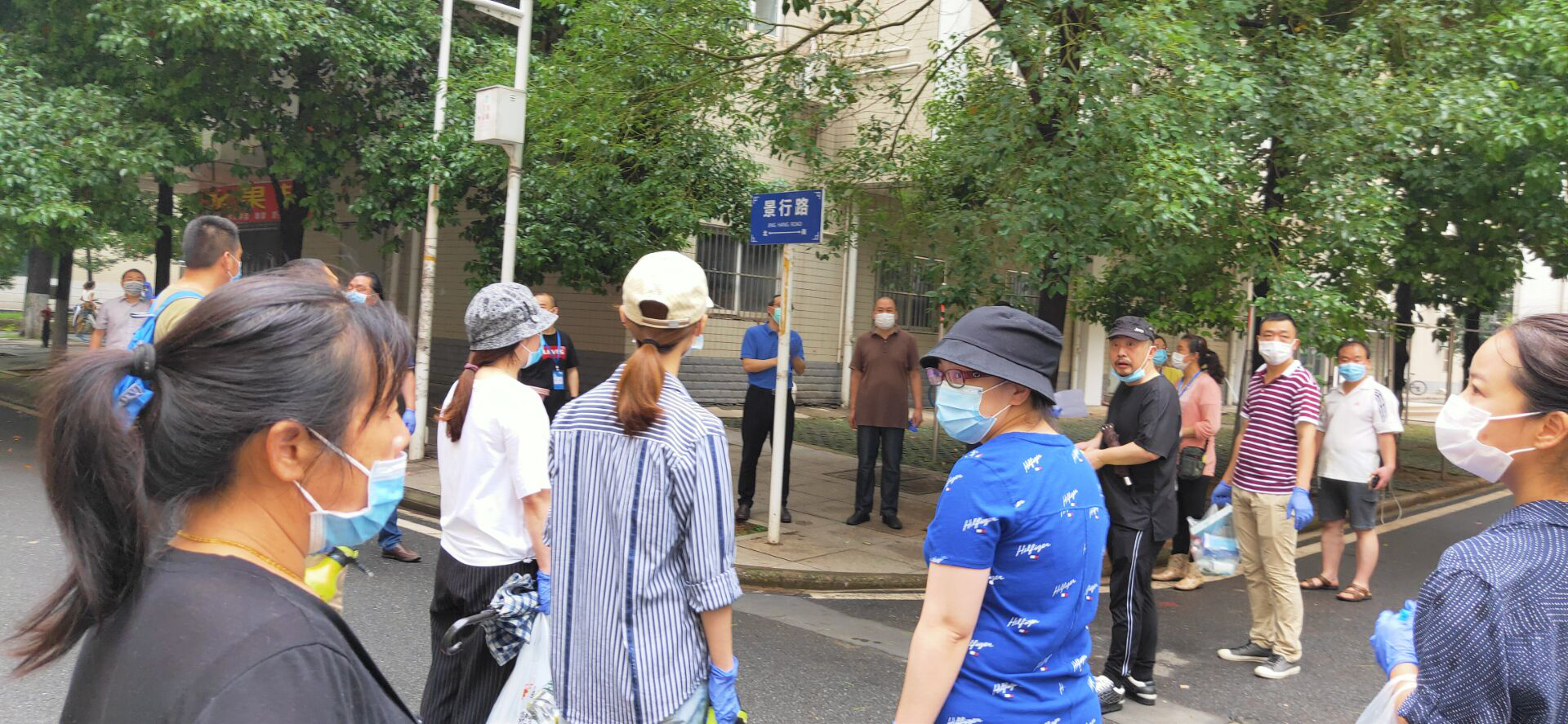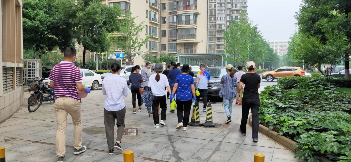 ▲积极参加行动的美院党员干部和教师员工集合在毕业生宿舍楼下