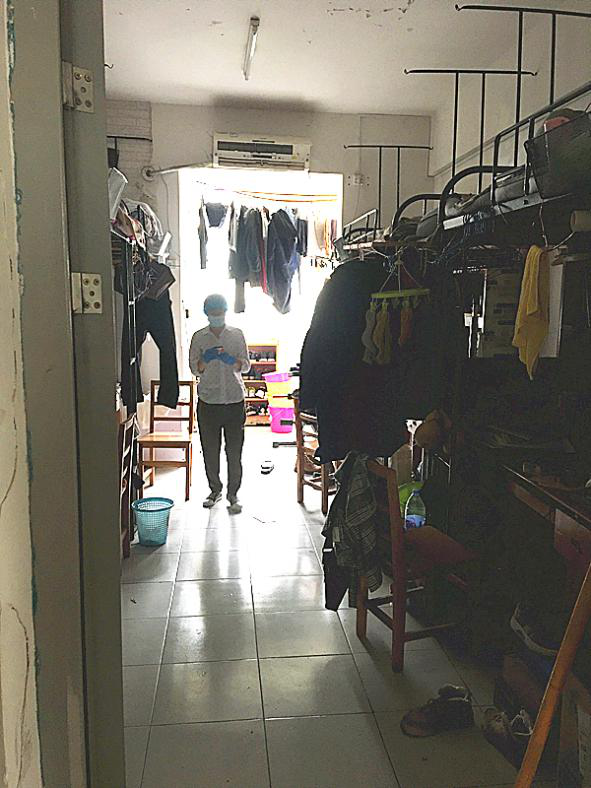 参与消杀工作的老师分为三组,携带清洁器具和消杀工具分别到美术学院本科毕业生男生、女生宿舍北区6A、5B,硕士研究生毕业生北区9B,3B和西区单一宿舍,完成毕业生共96间宿舍的逐间通风、清洁和消杀,刚下了场雨的天气十分闷热,老师们完成清洁消杀工作后都大汗淋漓。