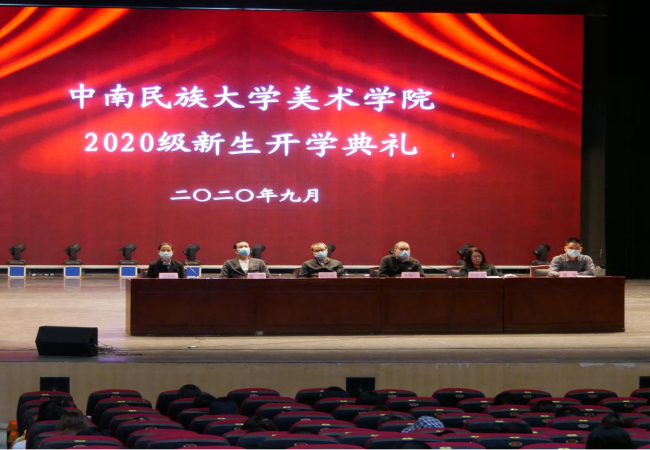 9月23日下午2:30,美术学院2020级新生开学典礼在学校大礼堂举行。会议由院党委副书记张雯君主持,院党委书记刘子元、院长吴海广、副院长程超、副院长彭阳陵、副院长潘俊及2020级辅导员叶扶荣莅临现场,美术学院2020级全体新生参会。