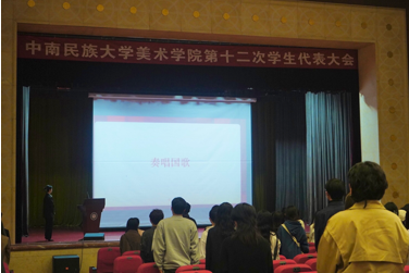 在所有与会代表庄严的奏唱国歌后,由美术学院团委书记刘宁老师致开幕词。首先他对每位与会学生代表出席今天的学代会表示真挚的问候与祝贺,对大会顺利召开和取得丰硕成果表达了期许。他对我院团委学生会在过去一年里所取得成绩给予了充分的肯定,并希望学院新一届的学生会组织和学生干部以此次会议为起点,继续发扬美术学院特色,积极发挥榜样作用,为美术学院团学工作迈上一个新的台阶提供新的动力。