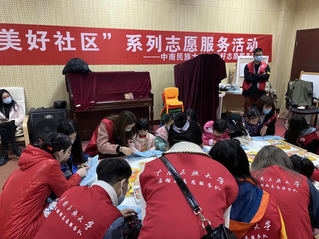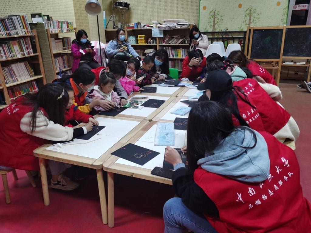 而美术学院青年志愿者协会,也在为保护江豚,保护长江生态行动着。带着江豚志愿服务队出版的画册,我们来到了民大社区绘本馆。