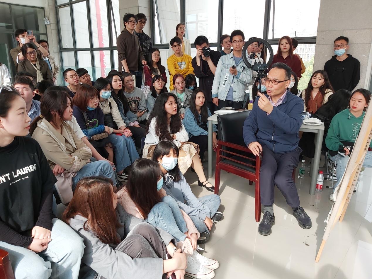 4月23日下午14:30,美术学院诚邀任惠中老师于光谷美术馆三楼开展水墨人物写生示范与师生交流活动。此次活动由美术学院副院长彭阳陵教授主持,绘画教研室主任陈雪亮老师,徐敏教授、陈岱老师莅临现场,绘画专业本科生和研究生全体参加。