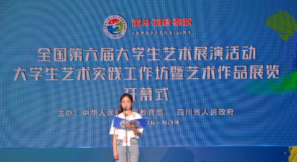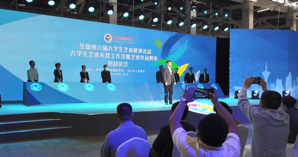 2021年5月6日下午14:30,全国第六届大学生艺术展演活动——大学生艺术实践工作坊暨艺术作品展览在四川省成都市东郊记忆·国际艺术展览中心开幕。