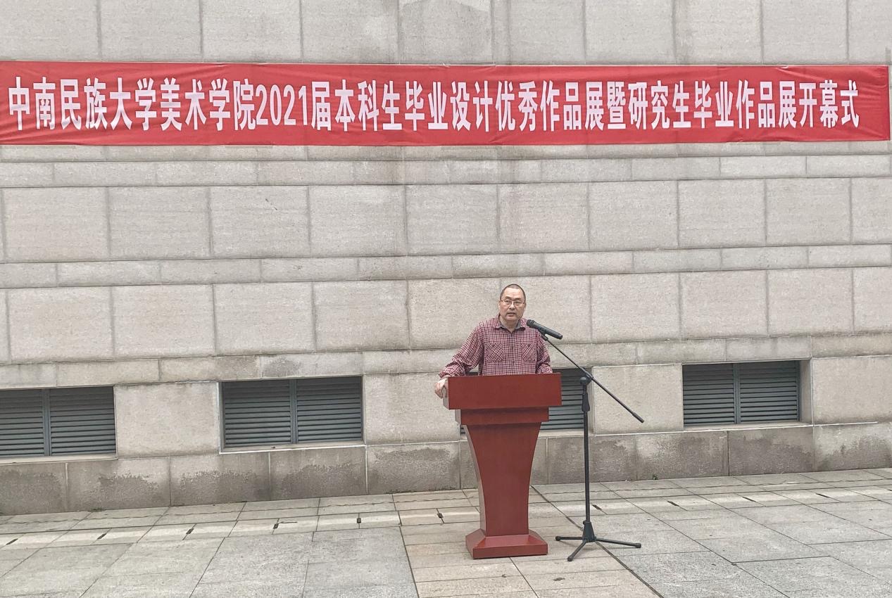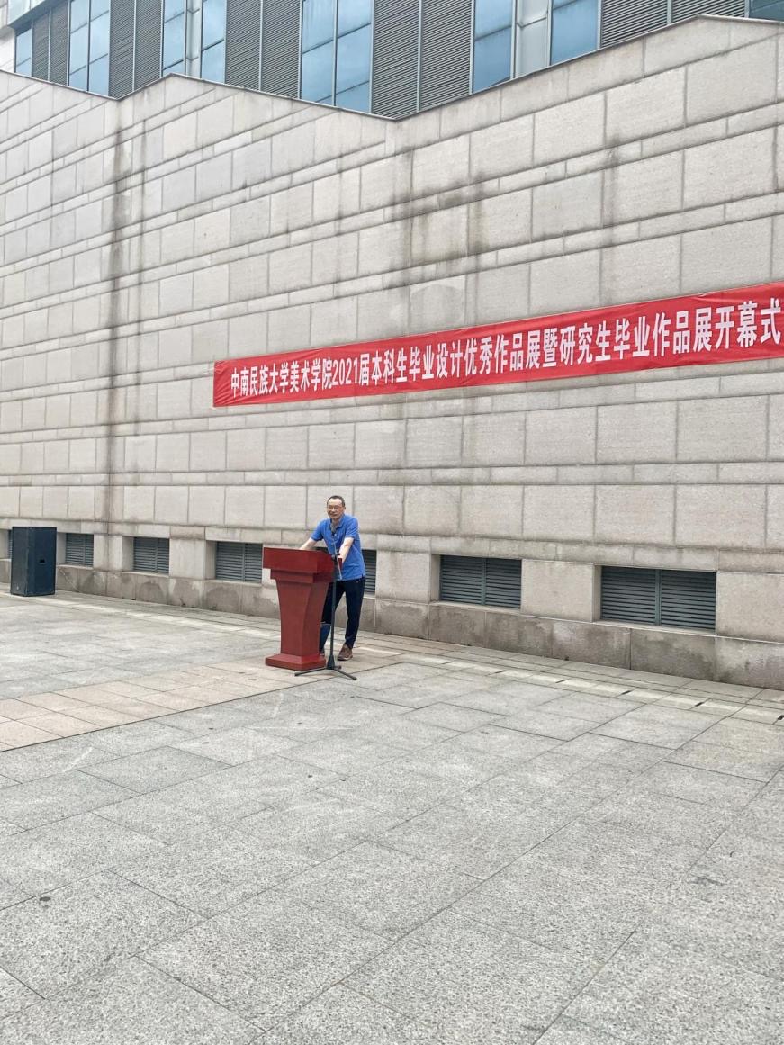 开幕式最后,党委书记刘子元发言,他感谢毕业展为毕业生提高理论素养和创作水平提供了良好的平台,肯定了研究生在毕业展中的活跃表现,并祝贺、勉励毕业生再接再厉,在艺术道路上不断探索,取得新成绩。