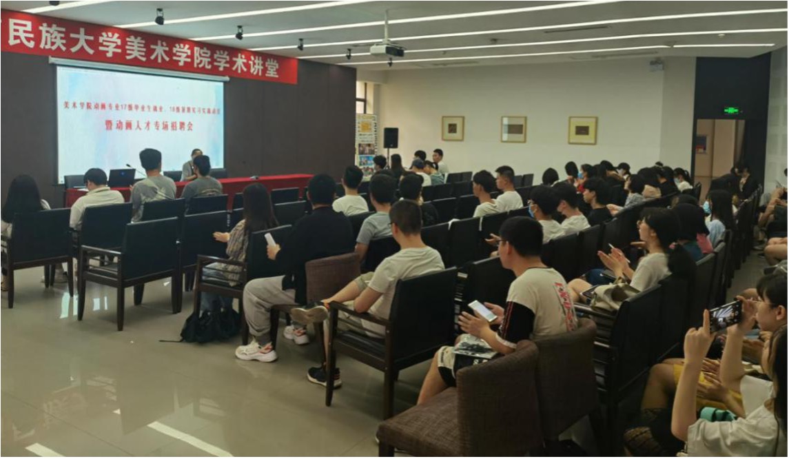 活动最后,三家企业现场组织招聘和初步面试,近距离的交流和沟通,也同时拉近了企业与学生之间的距离。活动结束后,动画专业学生和三家企业代表都对本次活动的效果非常满意。