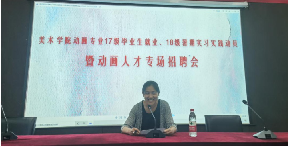 首先,学院党委副书记张雯君做就业动员讲话。她首先代表学院对来校招聘的三家企业表示感谢,她强调:我院一直致力于培养适应市场需求的高素质创新应用型人才,着力发挥专业优势深入开展校企协同育人。这次活动是第一次立足专业开展的毕业生就业和暑期实习实践动员和双选会,对于学院和学校关于“密切联系行业建设专业”这一工作部署的落实落地,意义重大。对于动画2021届毕业生同学,她提出三条建议:一是希望大家保持终生学习的能力,多来锻炼、多来学习;二是希望大家在找工作的时候要有明确的自我认知,不要盲目自大也不要缺乏自信;三是学会变通和适应,在就业冲刺期摆正心态,先就业再择业。对于动画2022届“准毕业生”,她谈到一点希望,希望大家能以此为开端,好好利用暑假实习实践锻炼的机会和平台,磨砺自己,等到毕业的时候让自己变的更强。最后,她预祝本次活动取得圆满成功,三家企业都能选到各自理想的人才。