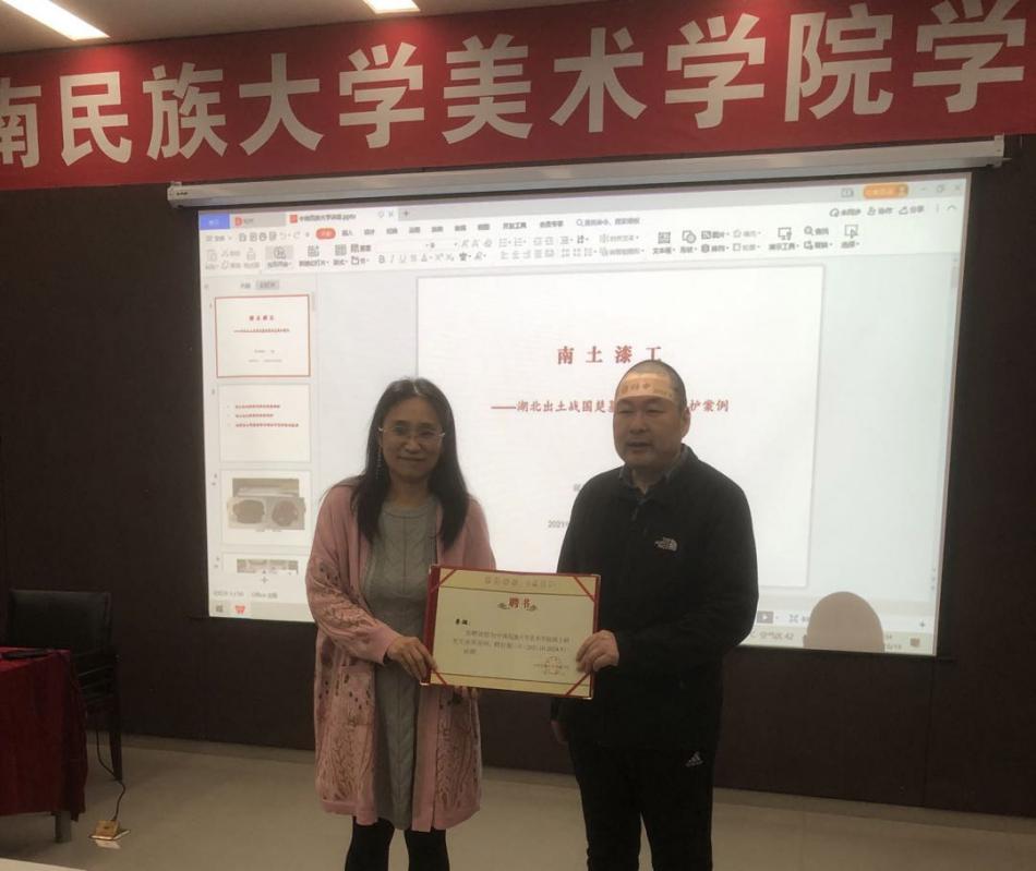 10月19日下午2:30,美术学院特邀请李澜老师在美术报告厅开展《南土漆工》专题讲座,此次讲座由湖北省博物馆李澜主讲,丁兰教授学术主持,吴海广院长,程超副院长出席,绘画、美术学专业的同学踊跃参加。本次“楚漆艺传承与创新作品展暨学术交流活动”是民族美术国家级实验教学示范中心(威尼斯886699)推出的2021年中国传统手工艺美育活动系列之二。