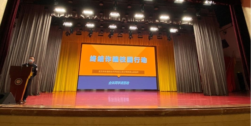 为提高2021级学生反诈意识、防止学生落入诈骗陷阱,共同维护良好有序的校园生活,美术学院于11月20日上午在学术会堂召开2021级防电诈安全教育大会,大会由学院党委副书记张雯君主持,特邀武汉市东湖新技术开发区铁箕山派出所罗浩警官为同学们讲解相关知识,2021级辅导员刘宁和全体2021级学生参加会议。