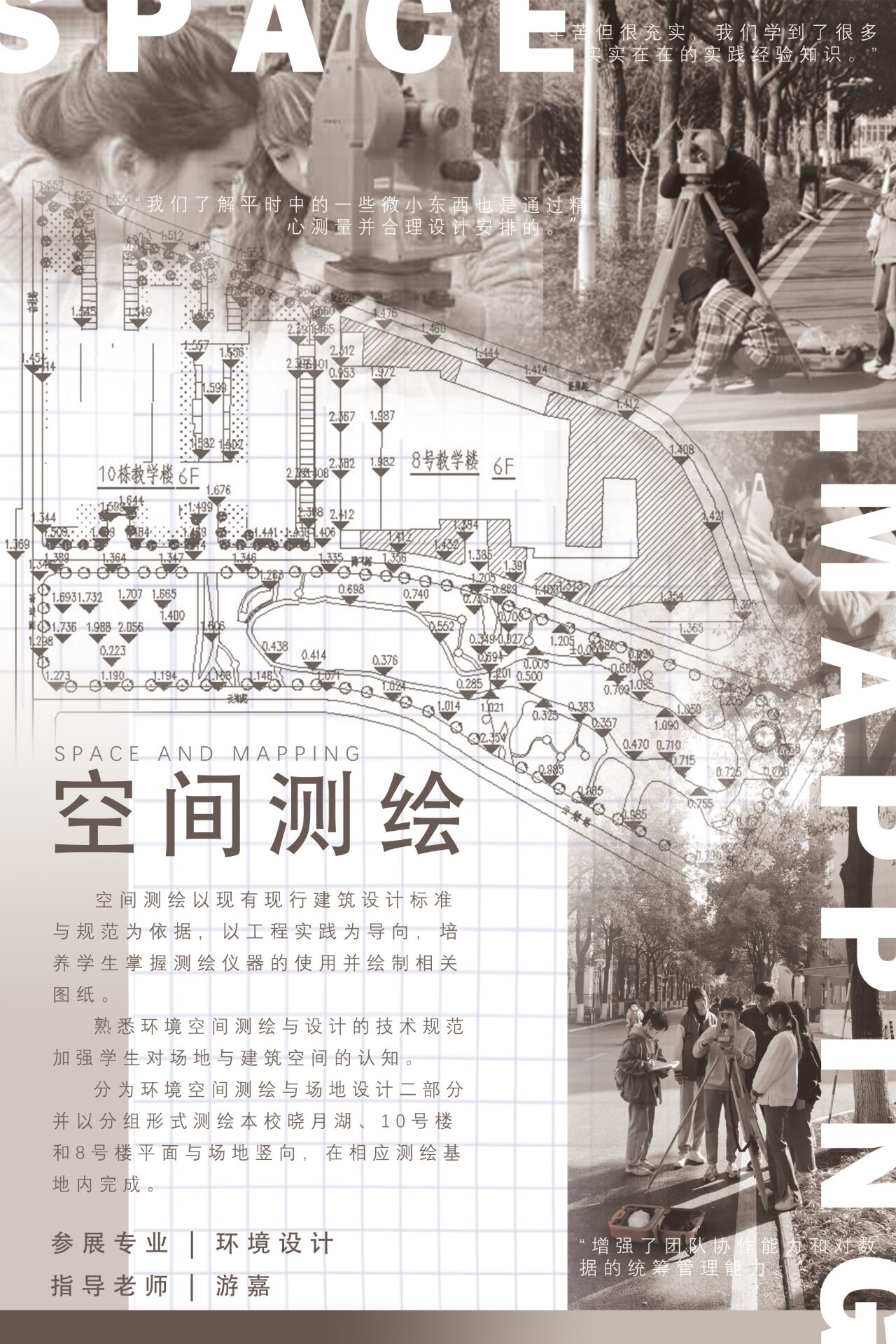 空间测绘以现有现行建筑设计标准与规范为依据,以工程实践为导向,注重工程实践能力、相关专业协调与适应能力,培养学生掌握测绘仪器的使用并绘制相关图纸,熟悉环境空间测绘与设计的技术规范,加强学生对场地与建筑空间的认知。同时,深入学习场地设计知识,掌握地景设计、场地设计的规范、知识与方法。