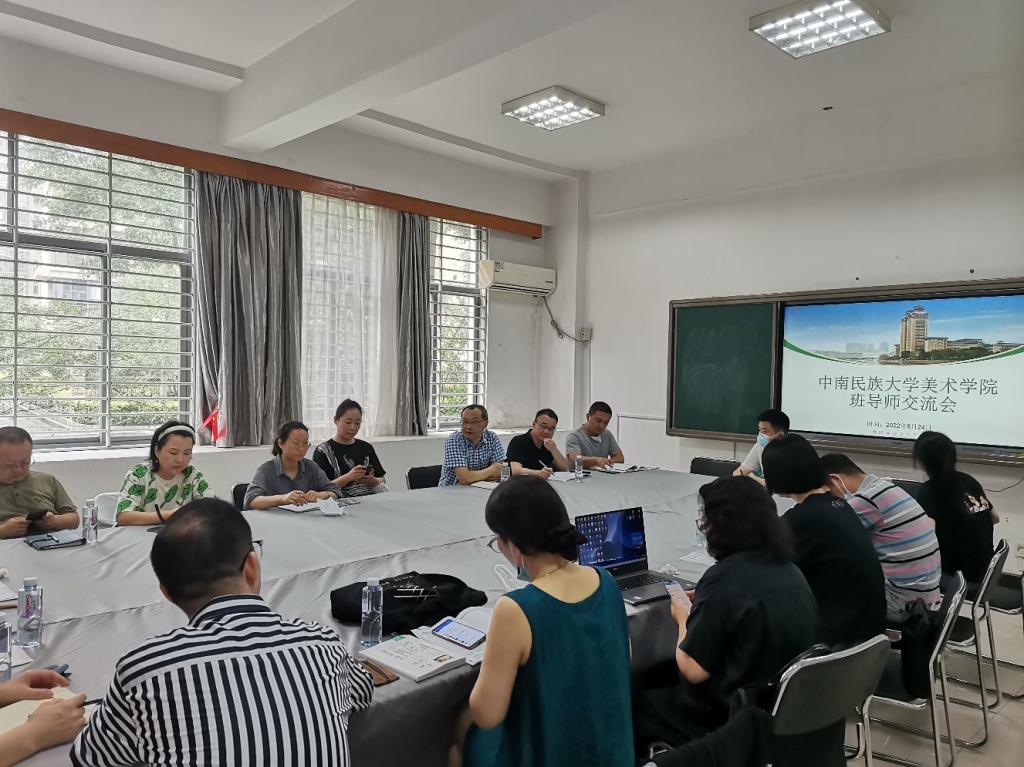 交流会上,各年级辅导员分别就本学期学生工作做了总结,汇报了各自年级学生的总体情况和目前需要特别关注的问题,交流了暑假和下学期开学初几项需要班导师配合的工作,包括毕业生就业工作、暑期家访、暑期延期离校学生管理、下学期晚查寝等工作,全体班导师围绕如何做好班导师工作分别从行为习惯养成、家校互动、保安全底线、促毕业生就业、特殊群体服务管理、学业提升、班干部选拔和班级管理等几个方面做了交流发言。2020级视传3班班导师陈强胜谈了三点体会,他说,第一,学生需要管理。现在的学生自我管理意识和能力都比较差,老师应该加强管理,帮助学生养成良好的卫生习惯,学习习惯;第二,学生需要引导。进入大学,学生没有明确的奋斗目标就很容易迷茫,老师要通过个别谈话等方式加强学业规划引导,鼓励美院学生把精力和时间放在准备考研和参加竞赛等方面;第三,要发挥榜样的示范引领作用,经常请优秀学长和优秀毕业生同低年级学生分享成长心得,正向激励学生。