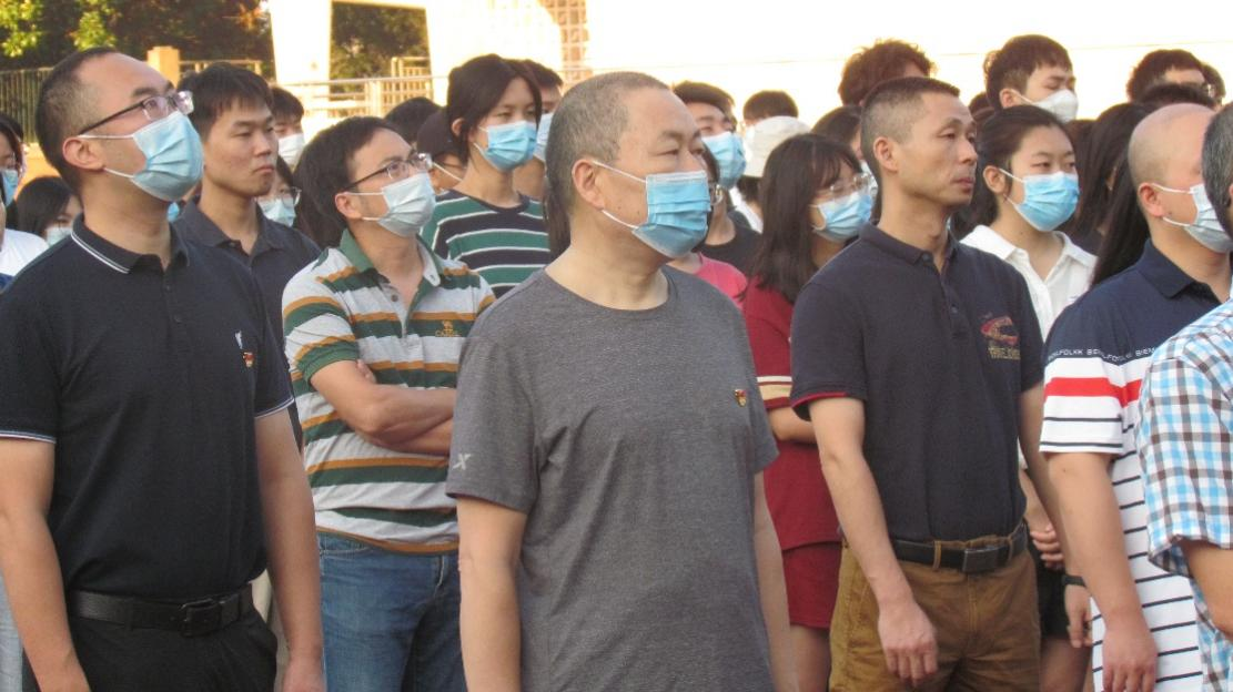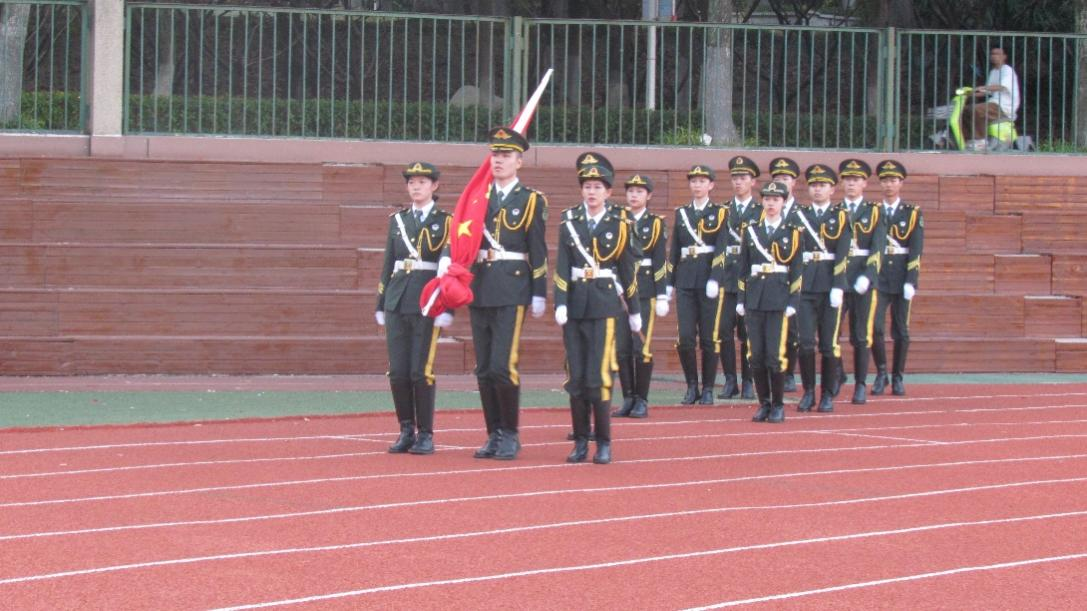 上午7时,升旗仪式正式开始,护旗手英姿挺拔、昂首阔步,迈着铿锵有力的步伐,护送鲜艳的五星红旗走向升旗台。伴随着庄严的《中华人民共和国国歌》,全体师生集体向国旗行注目礼、同唱国歌。