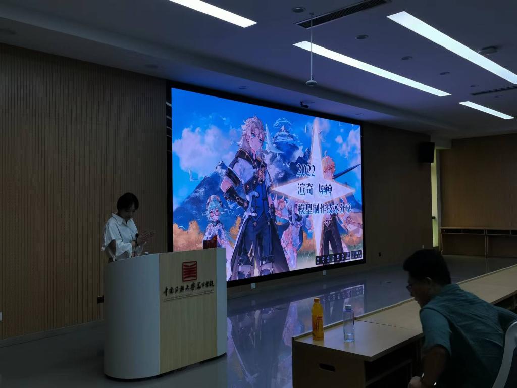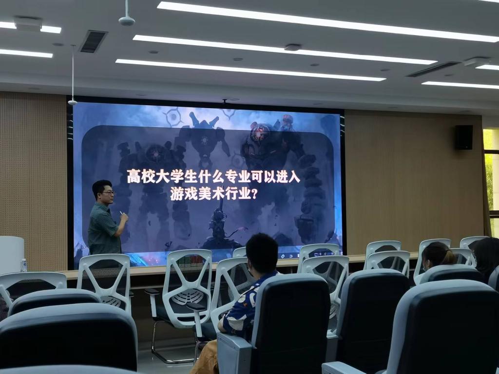 宣讲会上,渲奇公司的负责老师详细的介绍了行业前沿、原神模型技术分享和渲奇正在做的事。在分享过程中也通过抽取盲盒的形式,和同学们进行互动。同学们积极举手,提出自己对行业前景的顾虑、技术设备的疑问,也对公司的入职方式产生了浓厚的兴趣。