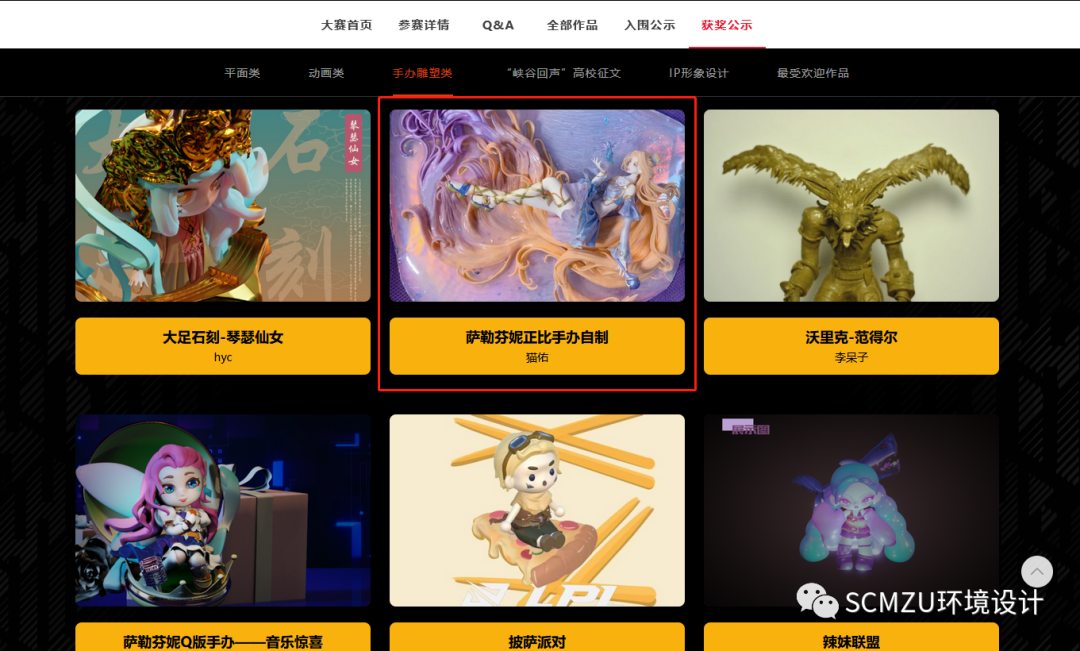 我院2019级环境设计专业学生赵恺新携作品《萨勒芬妮正比手办自制》参赛,喜获本届大赛手办雕塑类全国三等奖。