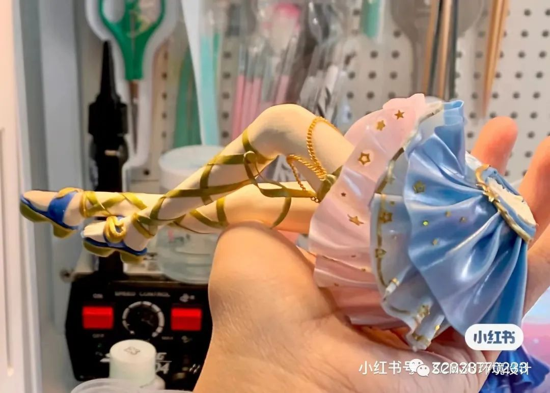 手办雕塑设计主要注重于细节刻画和材质质感体现,基于人物原型进行二次创作,使形象效果活灵活现,多种材料的运用使整体的视觉感受更加和谐。