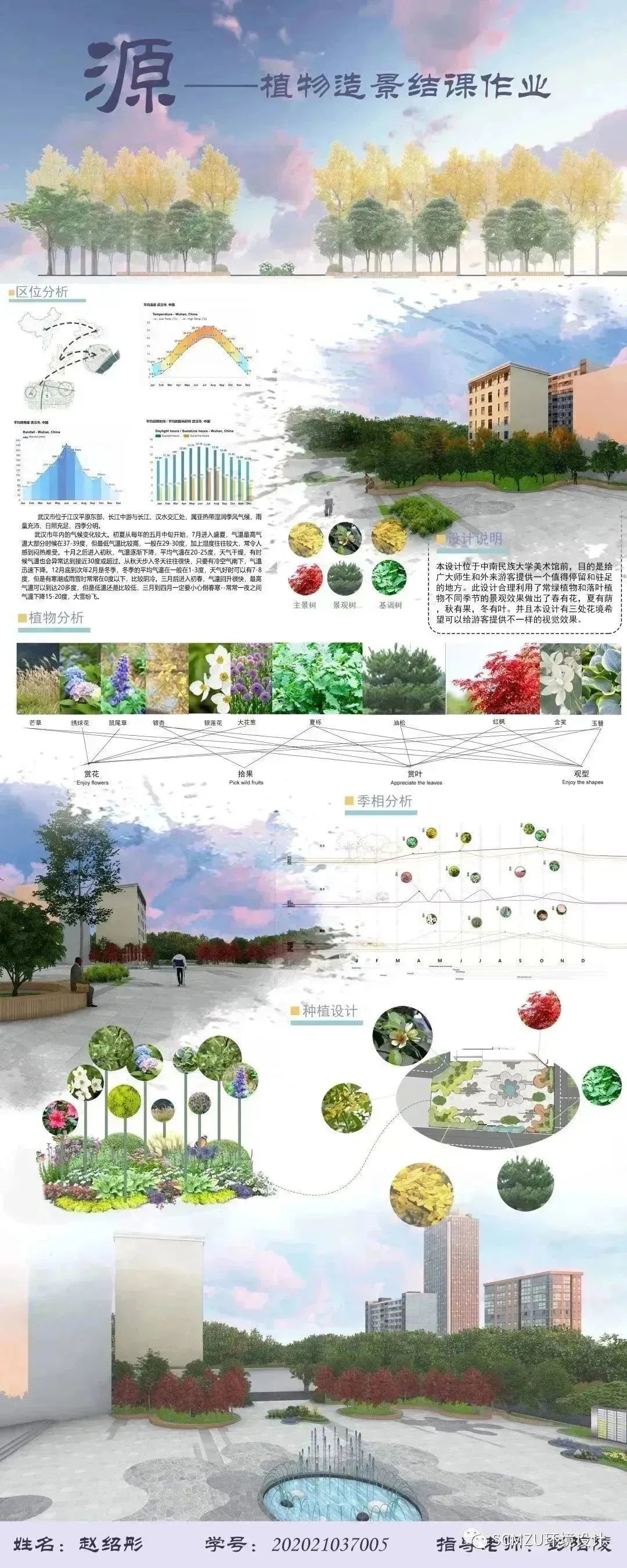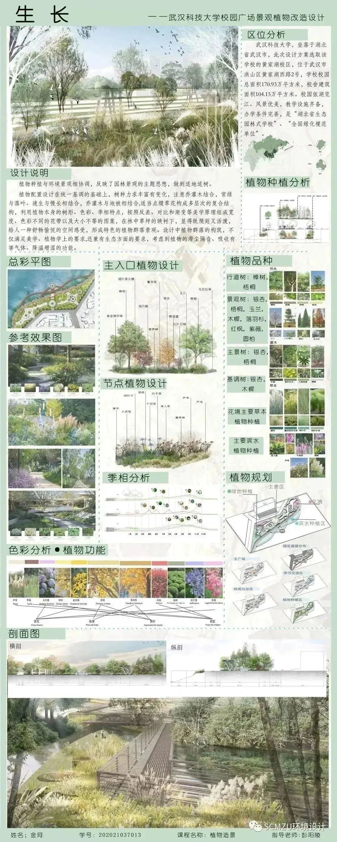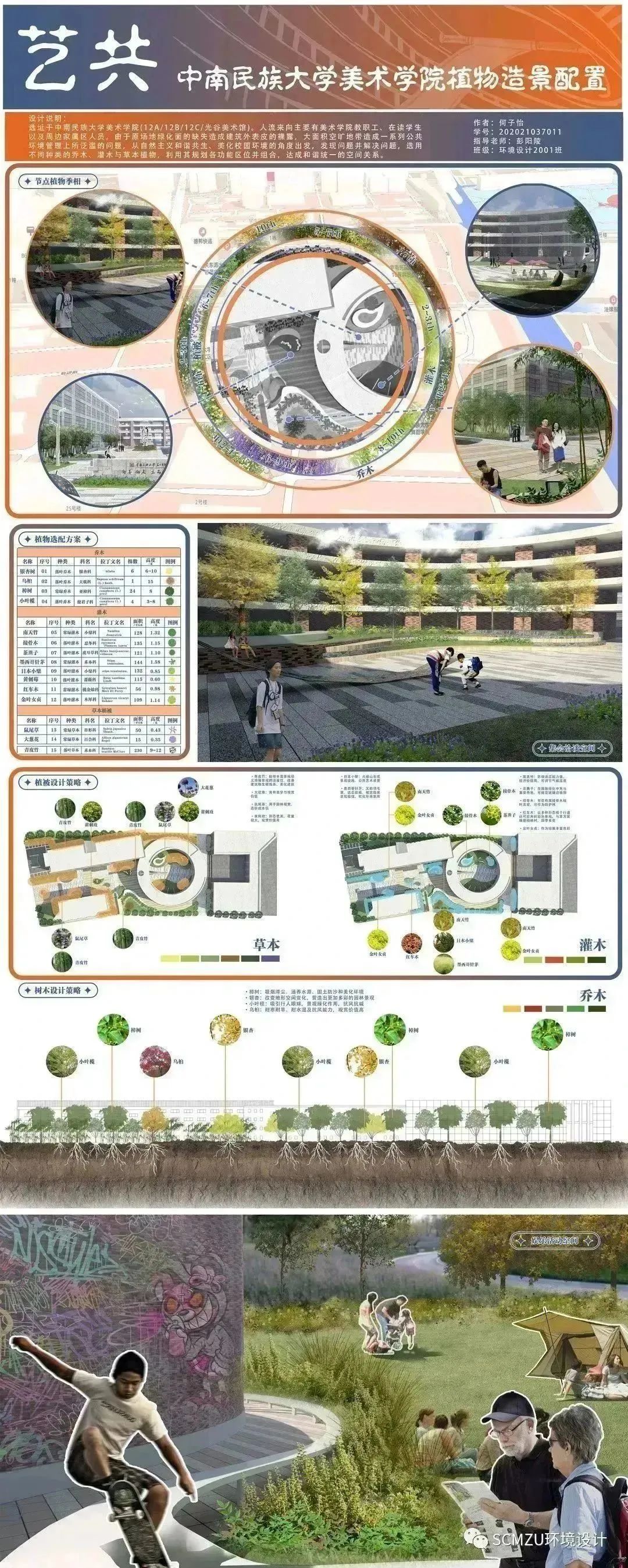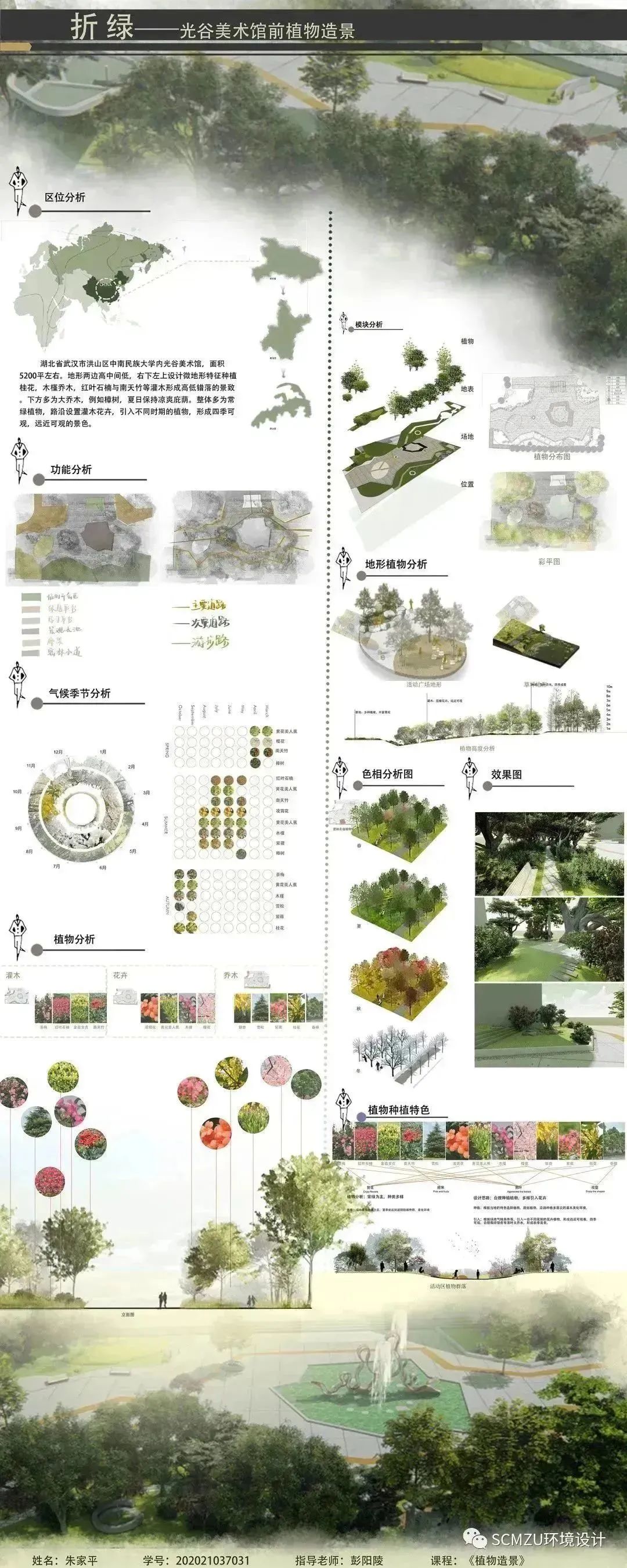 设计说明:选址于威尼斯886699美术学院(12A/12B12C/光谷美术馆)。由于原场地绿化面的确实造成建筑外表皮的裸露,大面积空旷地带造成一些列公共环境管理上所泛滥的问题,从自然主义和谐共生、美化校园环境的角度出发,发现问题并解决问题,选用不同种类的乔木、灌木与草本植物,利用其规划组合各功能区位,达成和谐统一的空间关系。