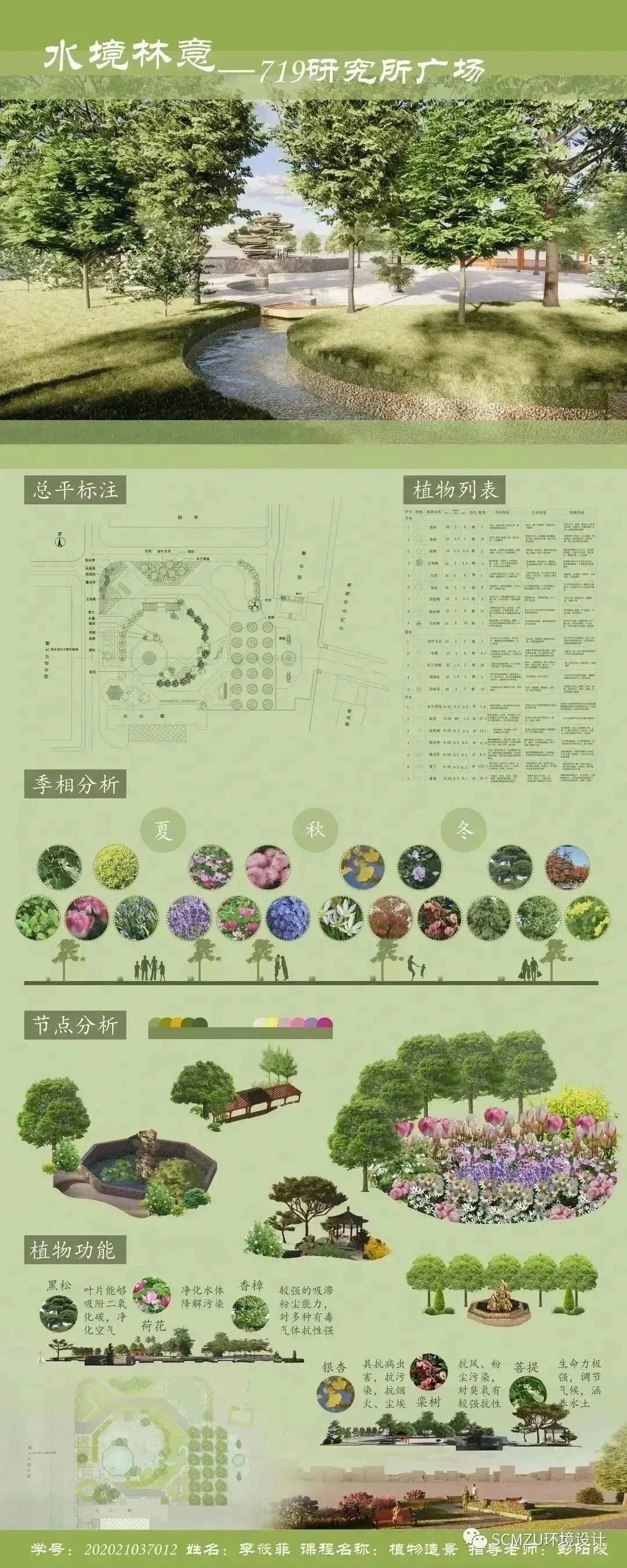 设计说明:梅,兰,竹,菊,被视为花中 “四君子”,松竹梅合称为“发寒三友”,古人常将•植物的个性与人联系在一起,不仅体现了该广场植物的古典韵味更表达了对美院的期望。