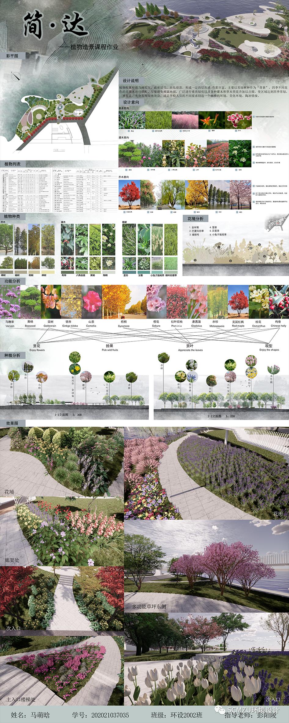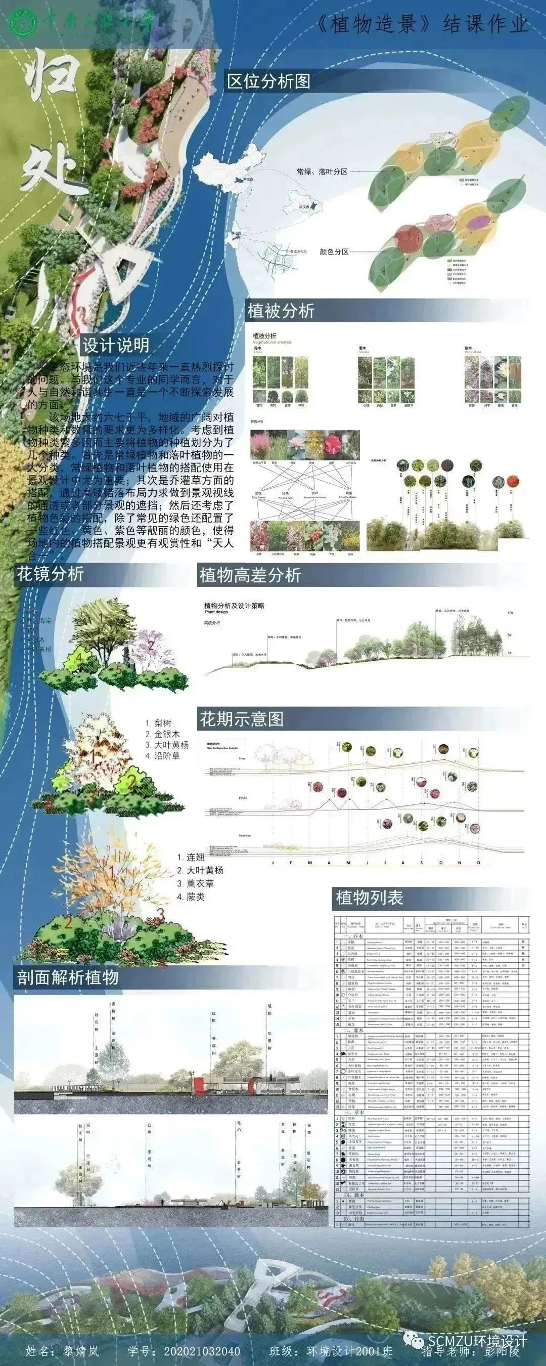 设计说明:生态环境是我们近些年来一直热烈探讨的问题。与我们这个专业的同学而言,对于人与自然和谐共生一直是一个不断探索发展的方面。 该场地大约六七千平,地域的广阔对植物种类和数量的要求更为多样化。然后还考虑了植物色彩的搭配,使得场地内的植物搭配景观更有观赏性和“天人合一”。