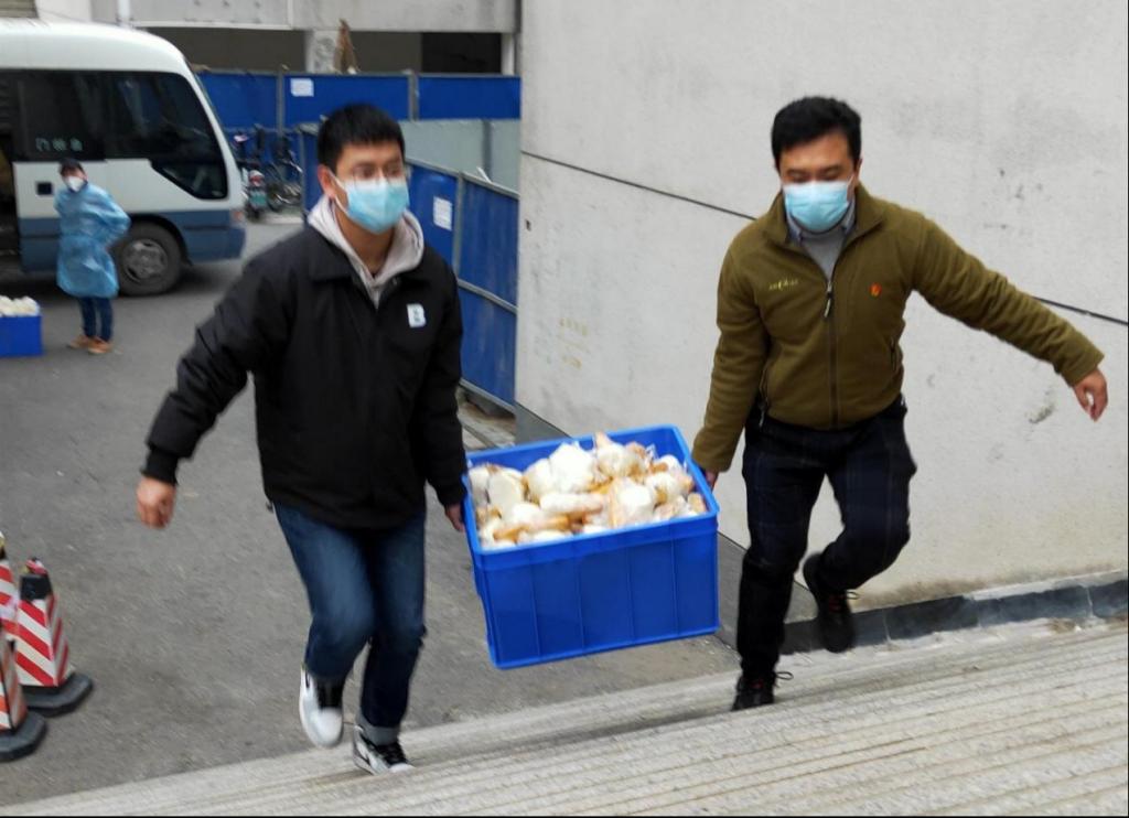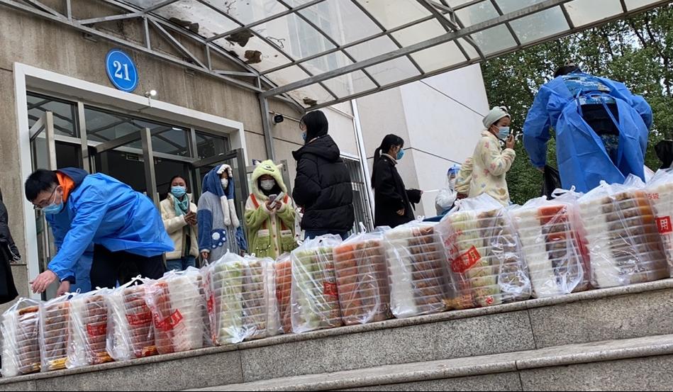 上系列图为教职员工、学生志愿者运送、分发餐食。