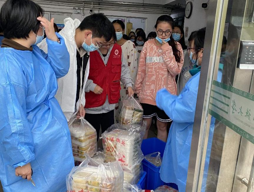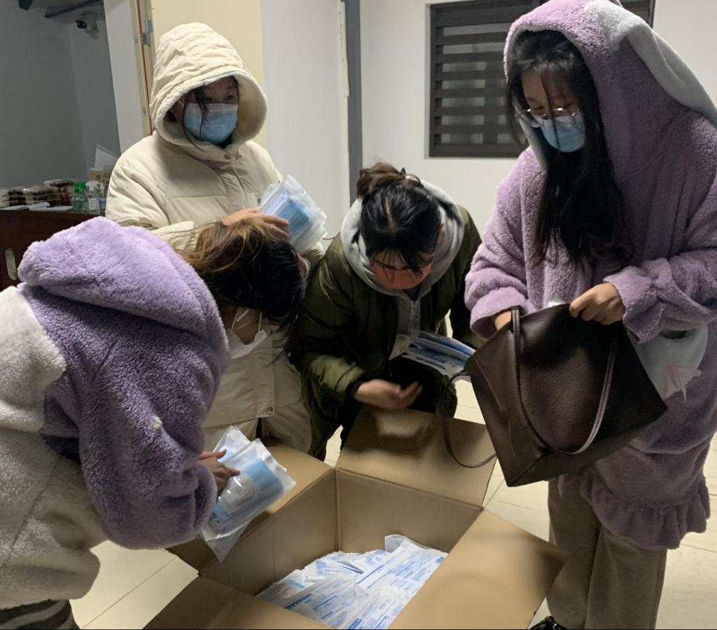 在各封控楼栋的学生志愿者们团结协作、划分责任片区,落实“联防联控、群防群控”,体现美院学子们的集体力量和昂扬斗志;可以有序流动的学生们也组成志愿者团队,协助运送、派发口罩等防疫物资。当一句句“谢谢你,同学”、“您忙完了早点回去吃饭,别凉了”、“有你们在,我们心里暖暖的”等话语传送到耳朵里时,他们的眼里充满了阳光、心里流淌着汩汩暖流,起床早、吃饭晚,课业集中、时间紧张带来的困难迎刃而解。