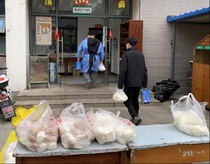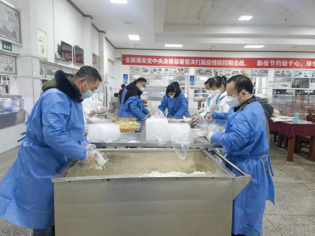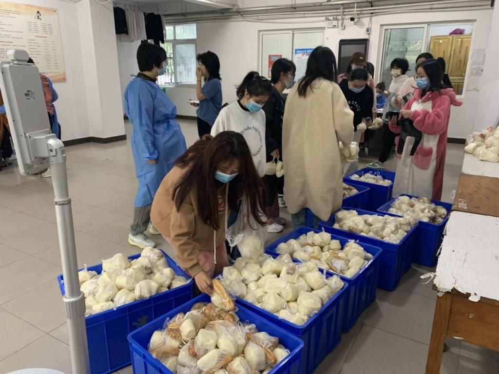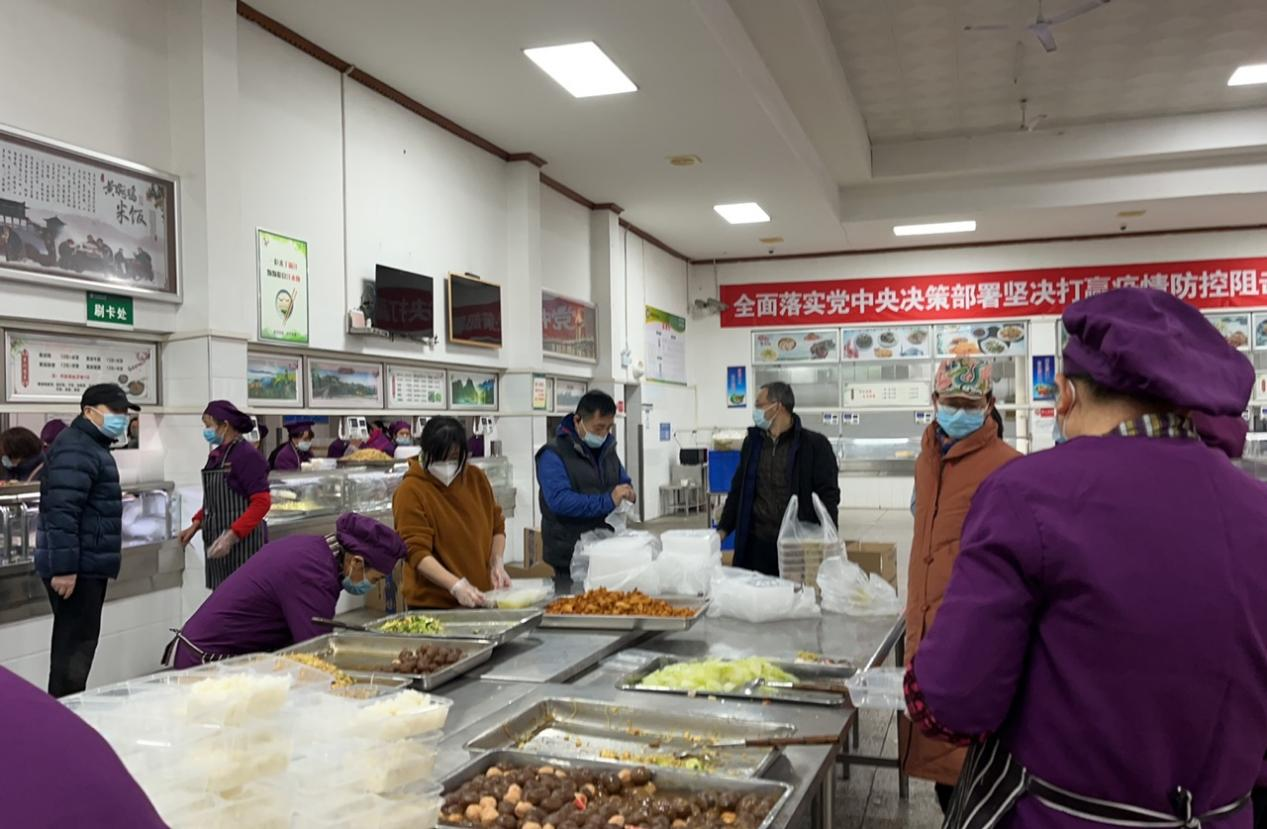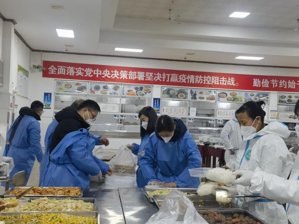 组建由教职员工参与的“美院保供群”,老师们上完网课、楼栋值班结束后立即赶到食堂加入到打饭、装配、运送大军中,有效缓解后勤保障人手不足的困难,为同学们准时吃上热乎乎的三餐提供保障。