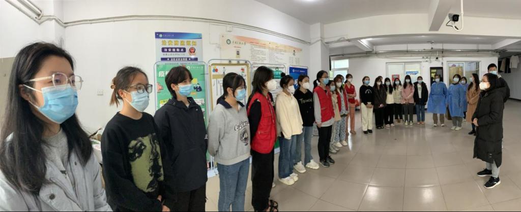 上图老师为楼栋内的学生志愿者团队展开培训、指导工作。