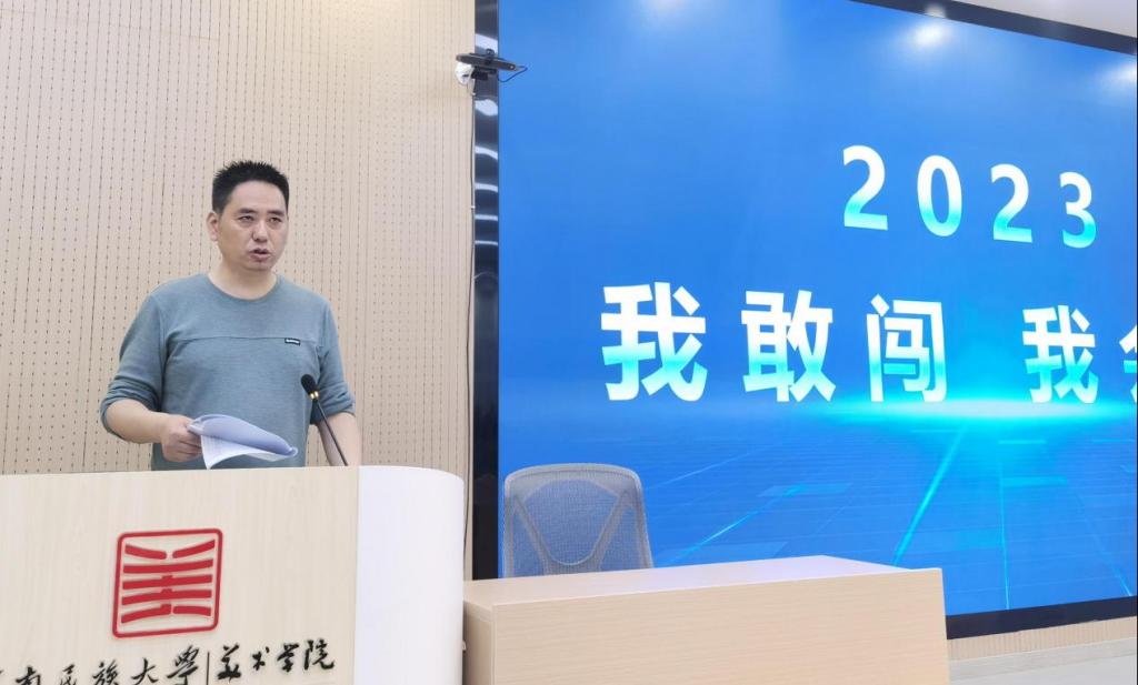 2023年4月19日中午,美术学院举行2023年大学生创新创业工作动员会在美术馆3楼报告厅举行。美术学院副院长潘俊老师,2020、2021、2022级学习委员和学生代表参加会议,活动由王海涛老师主持。