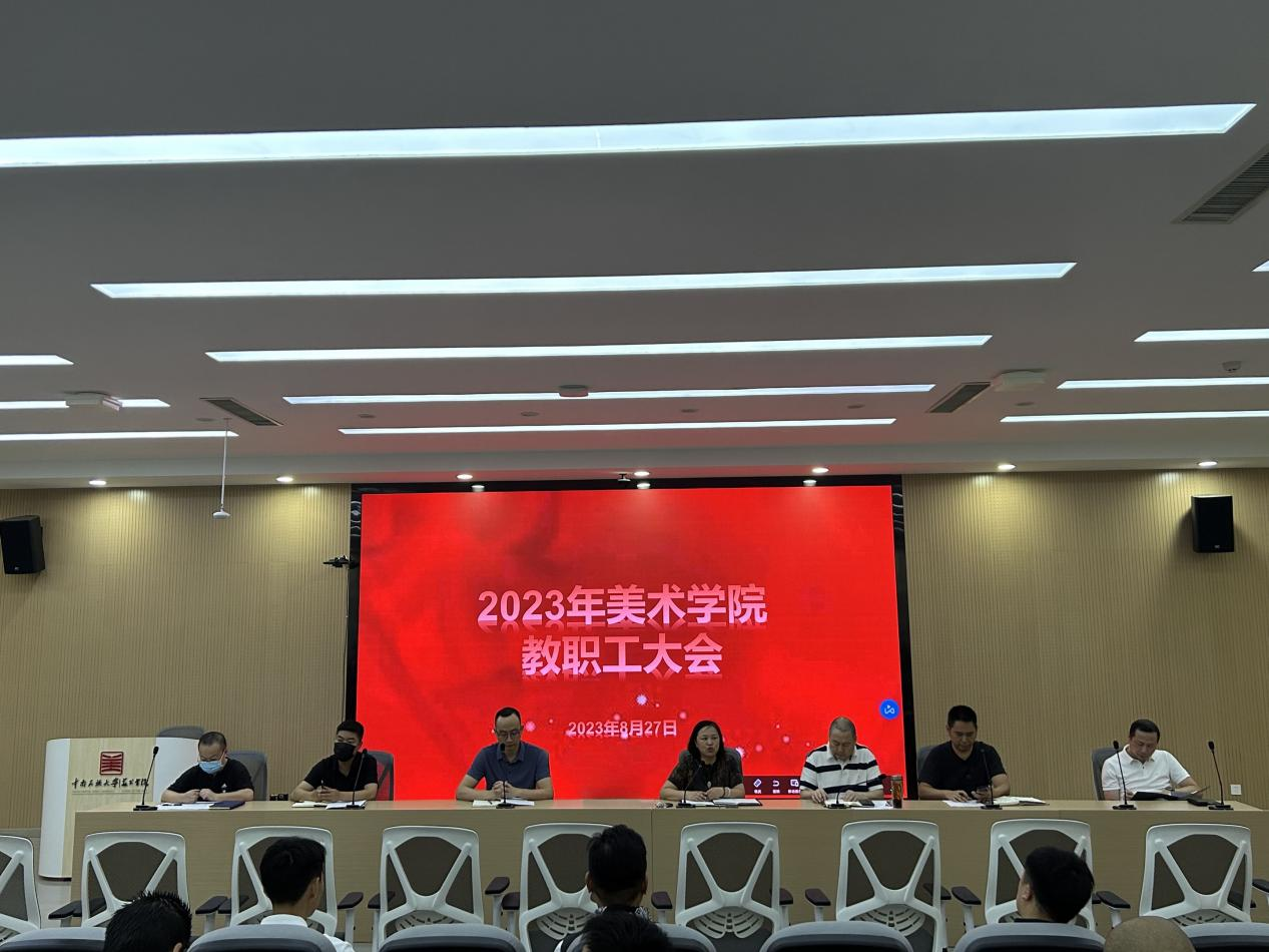 8月27日上午,美术学院在美术馆学术报告厅召开2023年秋季新学期教职工大会,学院全体教职工参加会议,会议由院长吴海广同志主持。