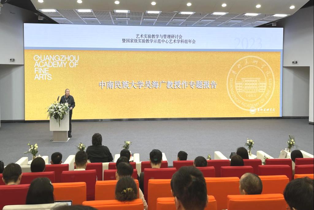 为推动艺术实验教学与管理发展,加强国家级实验教学示范中心艺术学科组交流学习,2023年11月22日-24日威尼斯886699美术学院院长、民族美术国家级实验教学示范中心主任吴海广教授,受邀广州美术学院出席2023年艺术实验教学与管理研讨会暨国家级实验教学示范中心艺术学科组年会,并作专题报告。示范中心副主任夏晋教授同行受邀。