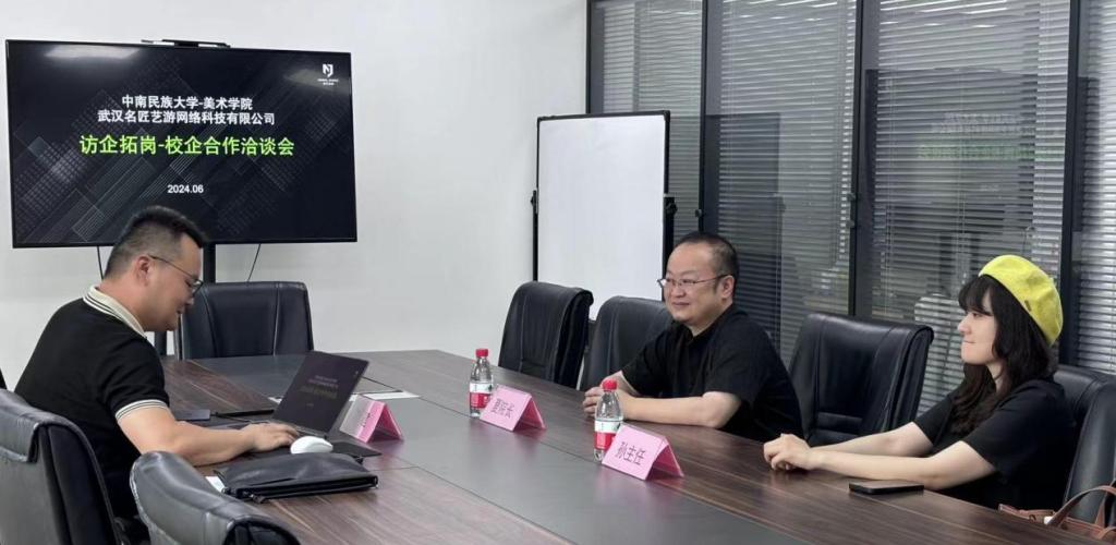 为继续深化院企合作,推动学院育才和企业用人精准匹配,促进毕业生高质量就业,6月14日美术学院副院长夏晋率队赴武汉名匠艺游网络科技有限公司开展访企拓岗活动,搭建实践平台,开拓就业岗位。动画教研室主任孙悦陪同前往。