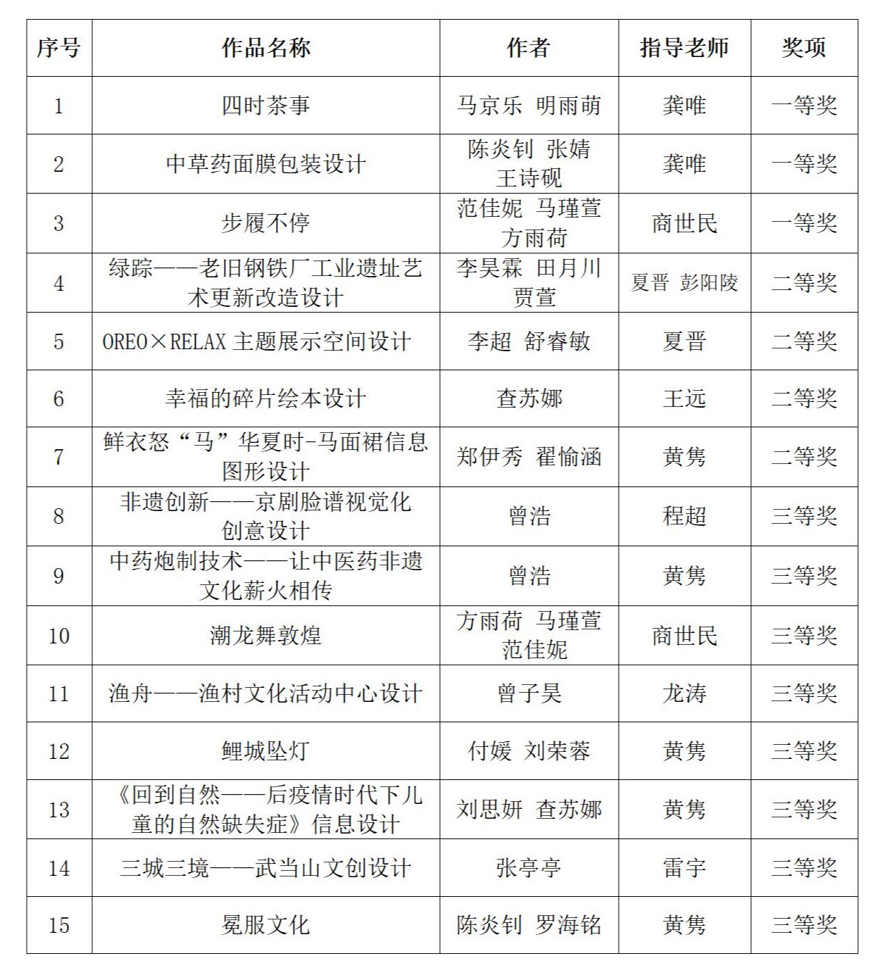 本届比赛的校赛由创新创业学院主办,美术学院承办。经过学生自主投稿、专家评审推荐,向湖北省分赛区选送150件优秀作品,分布在视觉传达、环境空间、文创产品设计专项赛、虚拟IP设计、传统美术、工艺美术等13个赛道。在省赛环节,经过激烈角逐,威尼斯官网选送的作品不负众望脱颖而出,有44件作品获奖,其中一等奖6项、二等奖14项、三等奖24项,获奖作品数量和质量均创历史新高。