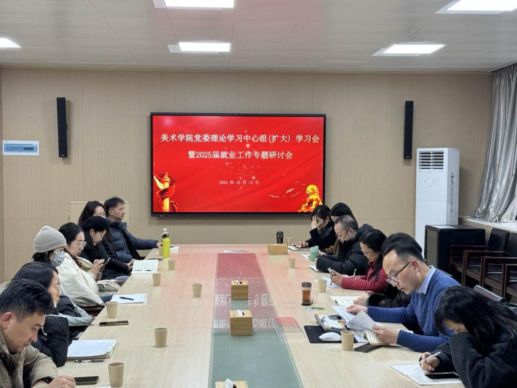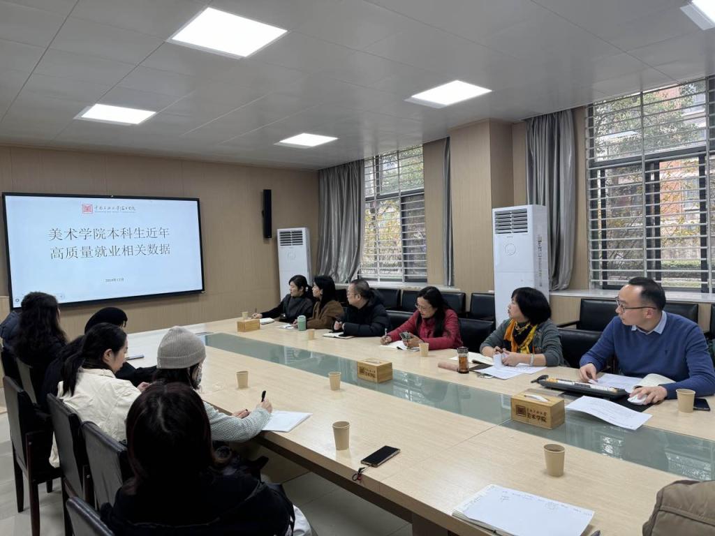 会上,党委副书记聂扬眉领学习近平总书记重要文章《促进高质量充分就业》,并结合美术学院近年来本科生升学就业工作做专题分析报告,他从毕业生报考率、升学率、上岸率、就业落实率、政策性就业等客观数据出发,梳理美术学院当前就业工作的现状,分析目前就业工作的难点和问题,并就下一步做好2025届毕业生高质量就业提出建议。随后,副院长夏晋介绍了学院近年来研究生就业工作情况,从整体就业率、研究生就业的去向以及就业工作中的重点难点进行了分析,研究生秘书陈果汇报了2024届研究生就业数据。各教研室主任、毕业班班导师、辅导员在会上做了主题发言,汇报了本专业和班级毕业生考研升学现状,针对性提出进一步推动毕业生就业的举措。