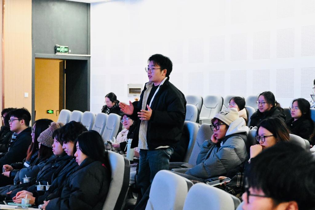 活动上半场,王凯先生分享了两个由其主持的博物馆建筑设计实践案例:湖北省仙桃市的市民环保科普馆和湖北省咸宁嘉鱼的古风田野博物馆。他详细讲解了项目的设计思路、场地挑战及解决方案,通过剖析设计过程,展示建筑与环境的有机融合和技术实现的可能性。在与学生互动环节,王凯先生结合自身经验,为学生解答了设计与行业发展相关问题,帮助学生开拓视野,激发他们对建筑设计的深入思考与探索热情。