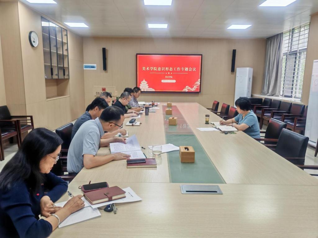 为深入贯彻落实上级关于意识形态工作的决策部署,进一步加强学院学术研究与艺术创作领域的意识形态管理,美术学院于5月26日上午召开意识形态工作专题会议。会议重点围绕学术文章类出版物及毕业设计(论文)的审查机制展开研讨,并对下一阶段工作进行部署。学院领导班子成员参加会议。会议由学院党委书记邹反修主持。
