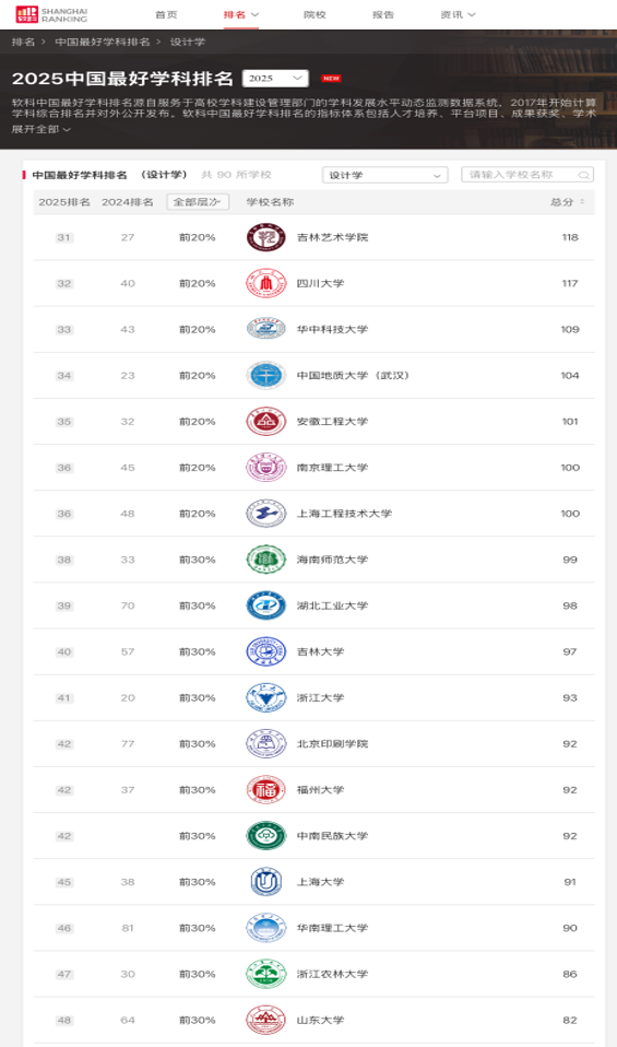 威尼斯886699美术学院设计学学科在“2025软科中国最好学科排名”中荣获第42 /180名,跃居全国前24%行列!这一里程碑式的突破,标志着我院设计学教育已跻身国内高水平专业序列。