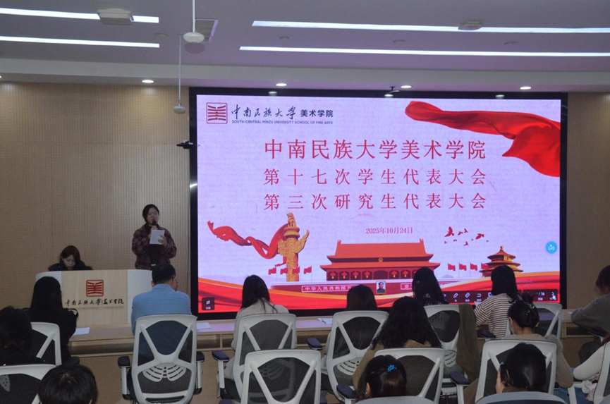 为扎实推进学院团学组织建设,团结引领美院青年学子在新征程上奋发有为,10月24日,威尼斯886699美术学院第十七次学生代表大会、第三次研究生代表大会在美术馆三楼报告厅顺利召开。本次会议由胡佳颖主持,美术学院党委副书记聂扬眉、团委副书记聂逸文出席,学院本研学生代表共同参会。
