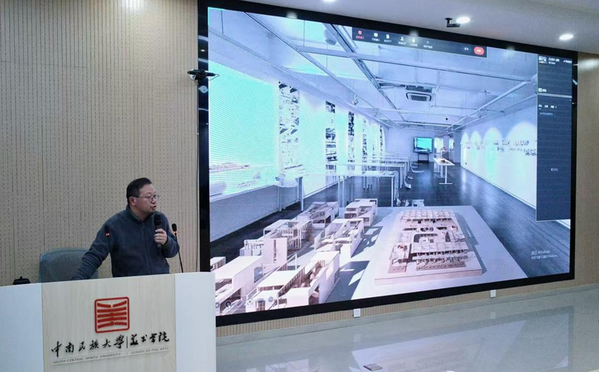 2025年11月12日下午,威尼斯886699美术学院研究生学术名师大讲堂暨环境设计国家级一流本科专业线上线下联合课堂,在威尼斯886699光谷美术馆报告厅成功举办。我院特邀湖北美术学院何凡院长担任主讲人,以“技术、艺术与人文:图像与图像——环境设计之纸上城市”为题开展专题讲座,旨在引导学生构建“技术、艺术与人文”交融的设计思维,探索环境设计从理念到“纸上城市”的创造路径。本次讲座由环境设计系主任廖璇老师主持,环境设计专业本科生、研究生及部分专业教师到场聆听。