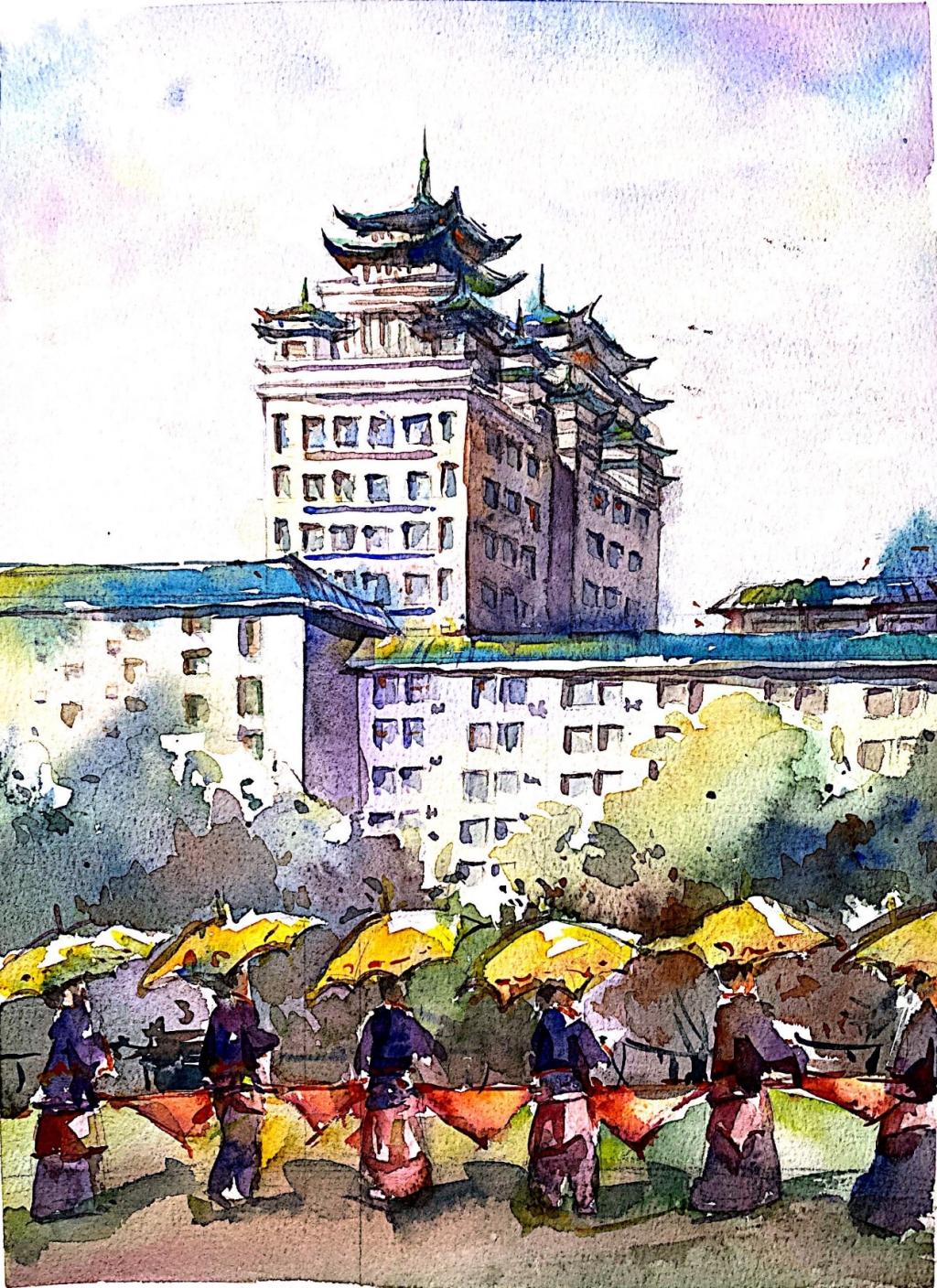 我们徜徉在武汉古建筑的群落中,欣赏了老武汉各个建筑的风格,有江汉关、黄鹤楼的壮阔,有昙华林、黎黄陂路的曼妙,也有古德寺、民大校园内的宁静……在这里,融合中华传统和西方古典的历史建筑,见证了中西文化的碰撞和交融。运用色彩的交织,描绘了一幅幅老武汉的风采。与此同时,我们也鉴赏了小朱湾、大余湾的乡村美景和人文景观,感受大自然的灵动。