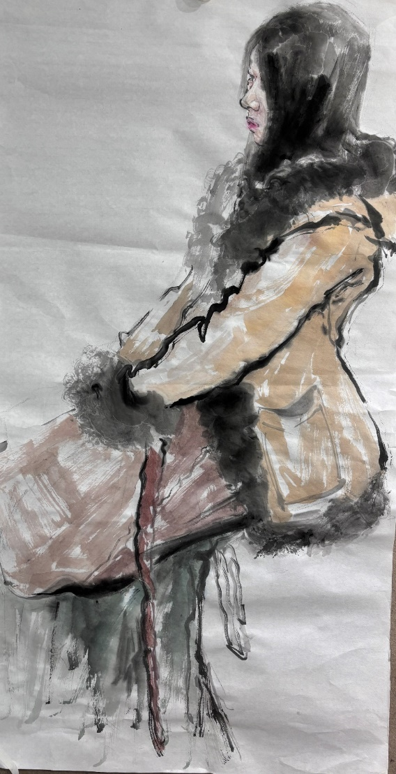 课程目标3:能熟练运用水墨材质表现人物对象。