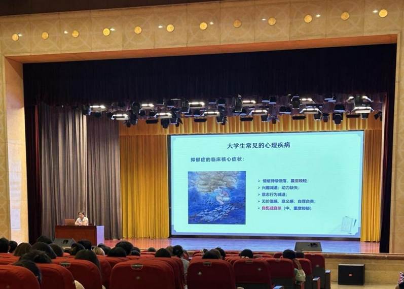 杜贺敏首先以世界卫生组织对心理健康的定义引出主题,系统介绍了心理健康的八大标准。她深入剖析了一般心理问题与心理疾病的主要症状及其成因,并针对大学生常见的情绪问题及心理困扰,指出持续情绪低落、易激惹、行为异常等是心理异常的常见信号。杜医生建议同学们通过参与心理活动、加强体育锻炼等方式积极预防心理问题。