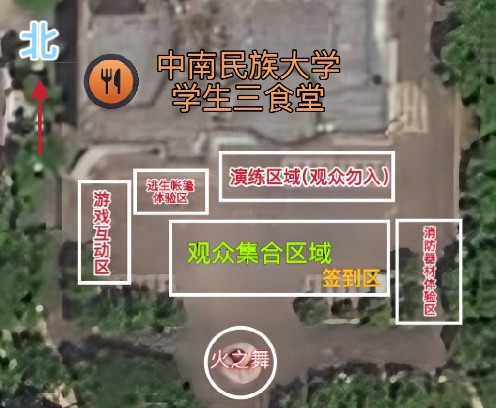 学生三食堂南边广场(火之舞雕塑以北区域)