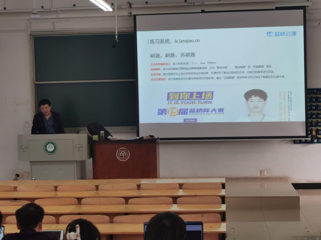 计科学院组织学生在课堂上收看蓝桥杯大赛宣传片图一
