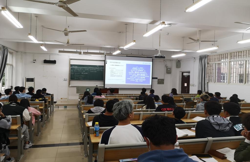 为积极响应组委会的备赛动员月活动,学校特组织了各相关学院(如电信学院、计科学院、生医学院等),在课堂上随堂播放大赛组委会提供的PPT介绍、视频介绍、宣传海报等资料,进行赛前动员宣讲会,以便让学生得以全方位地了解蓝桥杯大赛。为了更好地帮助学生备赛,组委会还特意给参与宣讲活动的学生准备了一份特别的礼物,通过扫描二维码,即可获得包括蓝桥杯历届真题解析在内的蓝桥云课备赛大礼包,受到学子们的热烈欢迎。