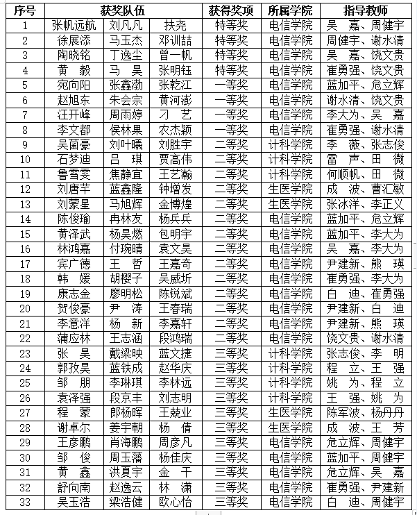 各相关学院高度重视学生实践能力和创新精神的培养,大力开展“第二课堂”工程实践能力培养,鼓励和支持学生参与高水平学科竞赛。以电信学院为例,该学院建有设施优良的创新实验室,组建了创新教师团队,制定了完善的系统化创新培养体系,定期开展电子设计协会专业基础培训、大学生电子创新设计训练、“求真杯”电子设计竞赛等系列创新活动和课外培训,鼓励学生将所学用于实践。