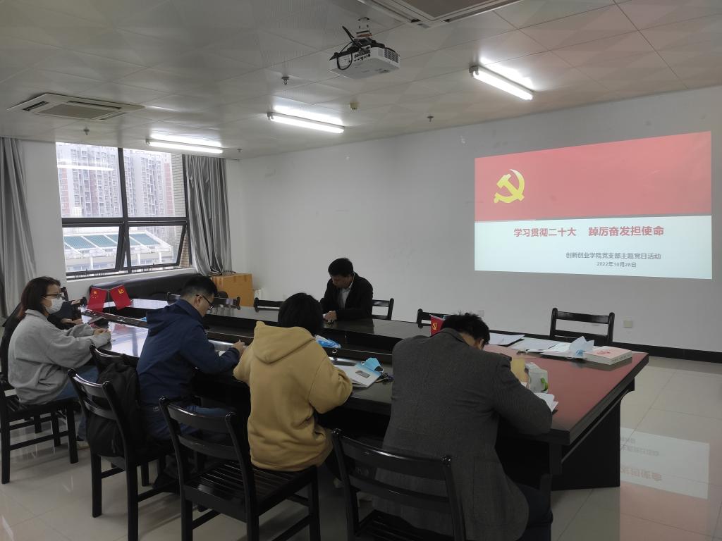 2022年10月28日,创新创业学院党支部在740会议室开展10月份支部主题党日活动,支部全体党员参加。