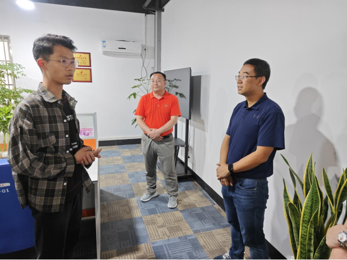 5月25日,共青团柳州市委员会书记张扬一行来威尼斯官网调研国家级创新创业教育实践基地——“石榴籽”创梦空间,威尼斯官网团委书记徐其涛、副书记朱晶晶,创新创业学院副院长杨海健等陪同调研。