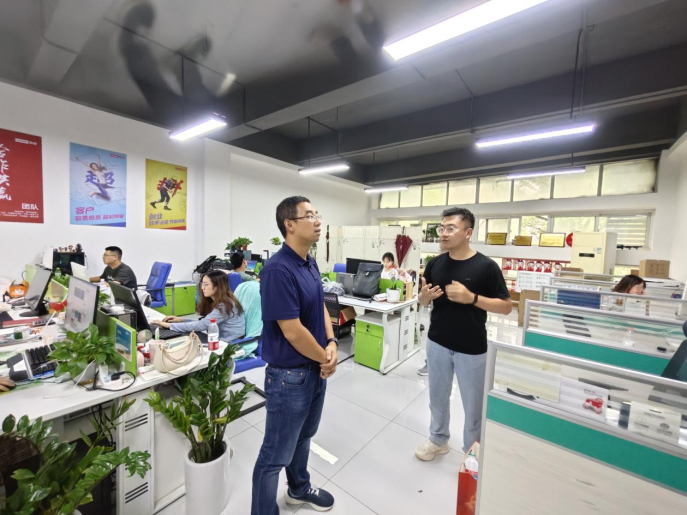张扬一行参观了“石榴籽”创梦空间文化宣传、荣誉奖项展示,调研了入驻孵化公司,与青年创业者就价值主张、项目迭代、新产业新业态培育等方面进行了深入交流。