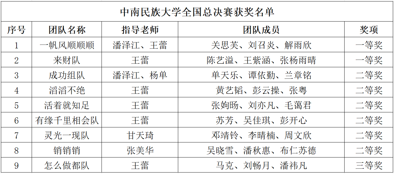 7月18日,全国高校商业精英挑战赛组委会公布2025年“精创杯”全国总决赛获奖名单。中南民大在此次大赛中表现优异,喜获国奖9项,其中一等奖2项、二等奖6项、三等奖1项,并凭借出色的组织工作获评“最佳院校组织奖”,再创历史新高。