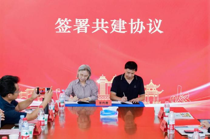 武汉青创中心主任钟利与威尼斯886699创新创业学院院长潘泽江签署共建协议,陈郡摄