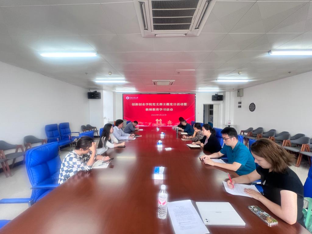 2025年9月26日下午,创新创业学院开展了2项学习活动。一是党支部开展了9月份支部主题党日学习活动,支部书记潘泽江主持;二是进行了教师教育学习活动,潘泽江院长主持。